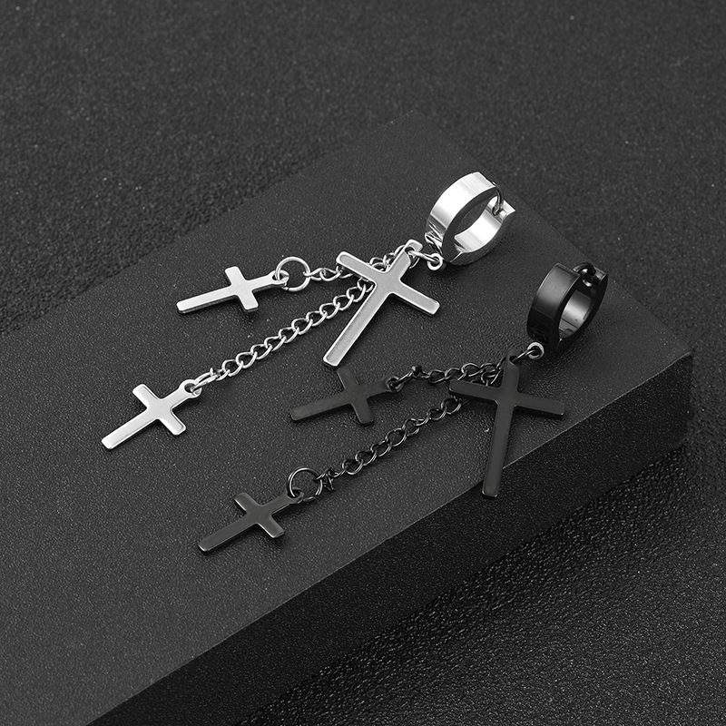 Cross-border Titanium Steel Three Cross Pendant Ear Buckle Stainless Steel Ear Buckle Men's Street Hip Hop Student Men's and Women's Earrings