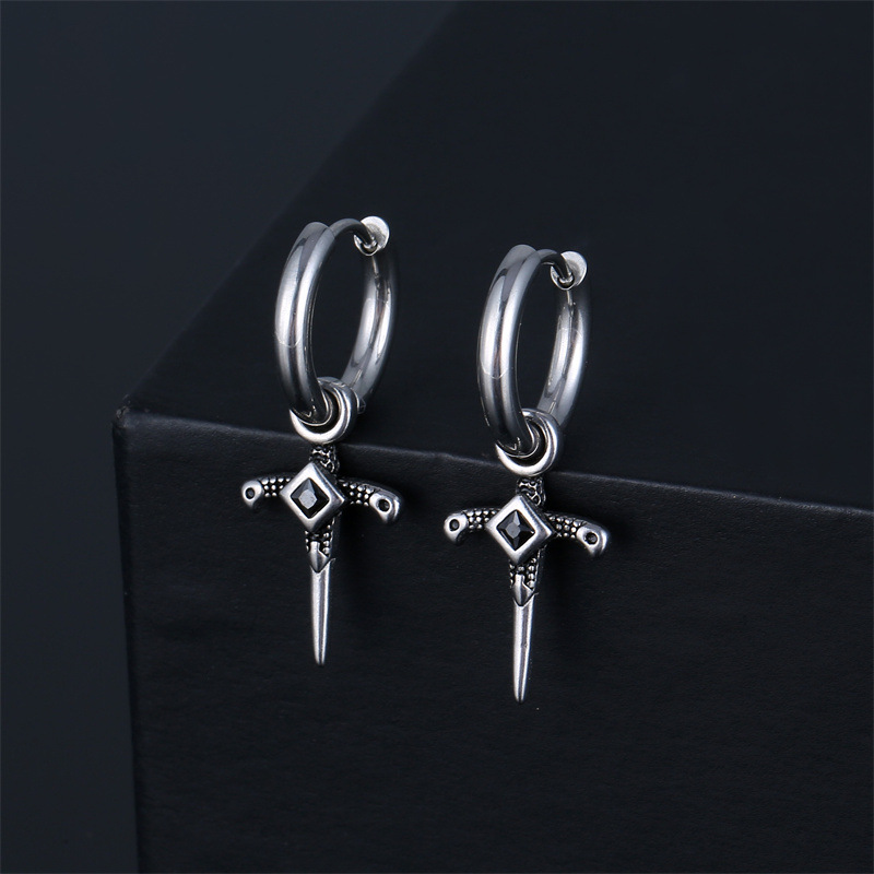 Cross-Border Hot-Selling Personalized Dragon-Pattern Titanium Steel Earrings for Men, Trendy Cross-Sword Pendant Accessories, Fashionable Commuter Earrings