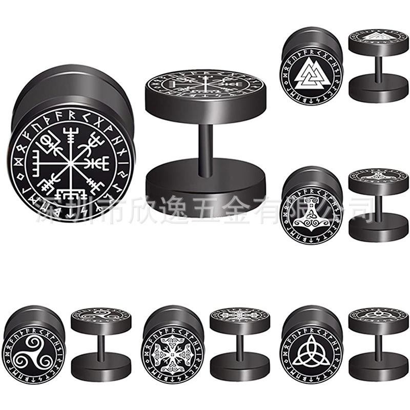 Nordic Dark Style Stainless Steel Viking Earrings Vacuum Electroplated Laser Marking Earrings Suitable for Men and Women