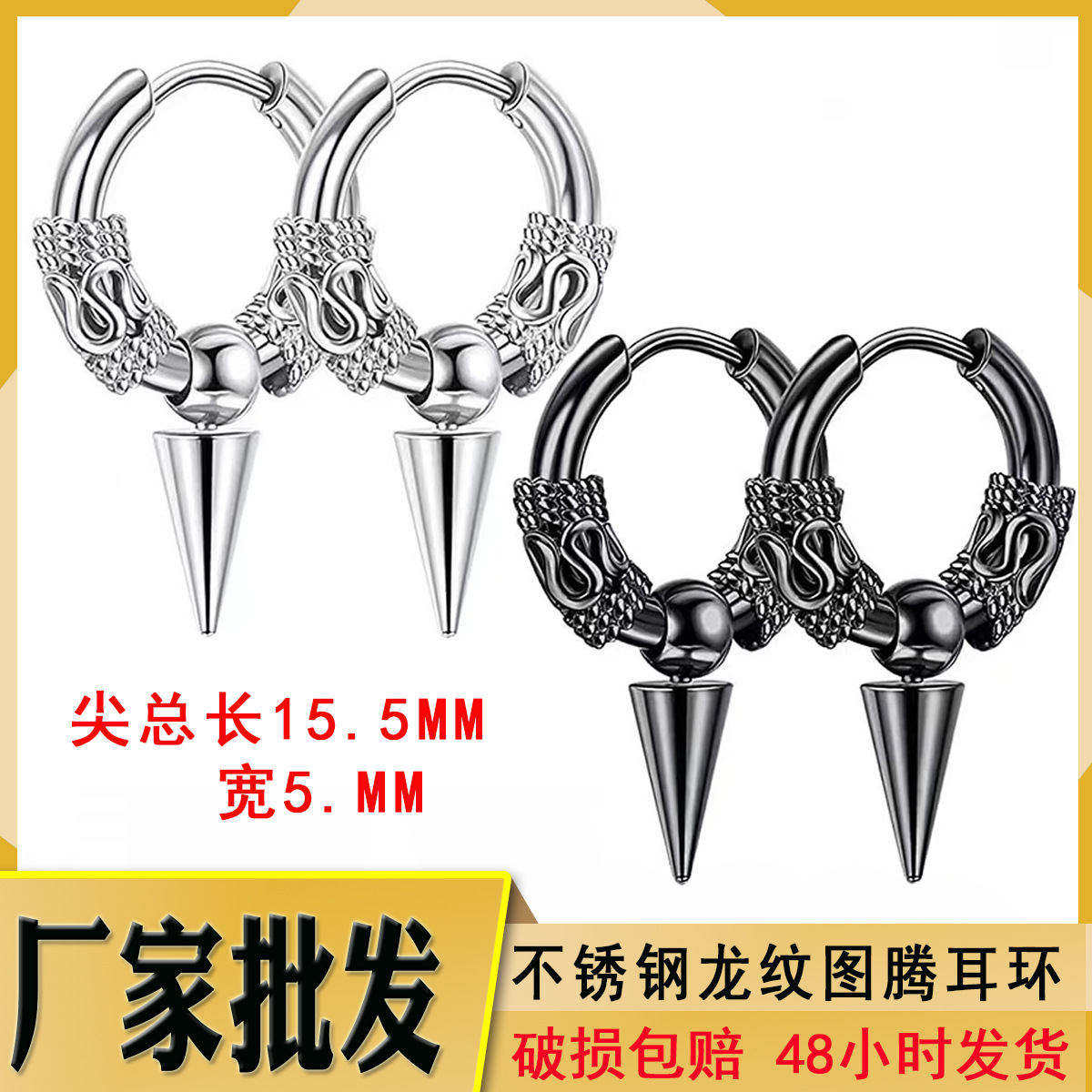 Cross-border Hot Selling Stainless Steel Dragon Totem Earrings Circle Cone Ear Buckle Trendy Distinctive Ear Clip DIY Earrings