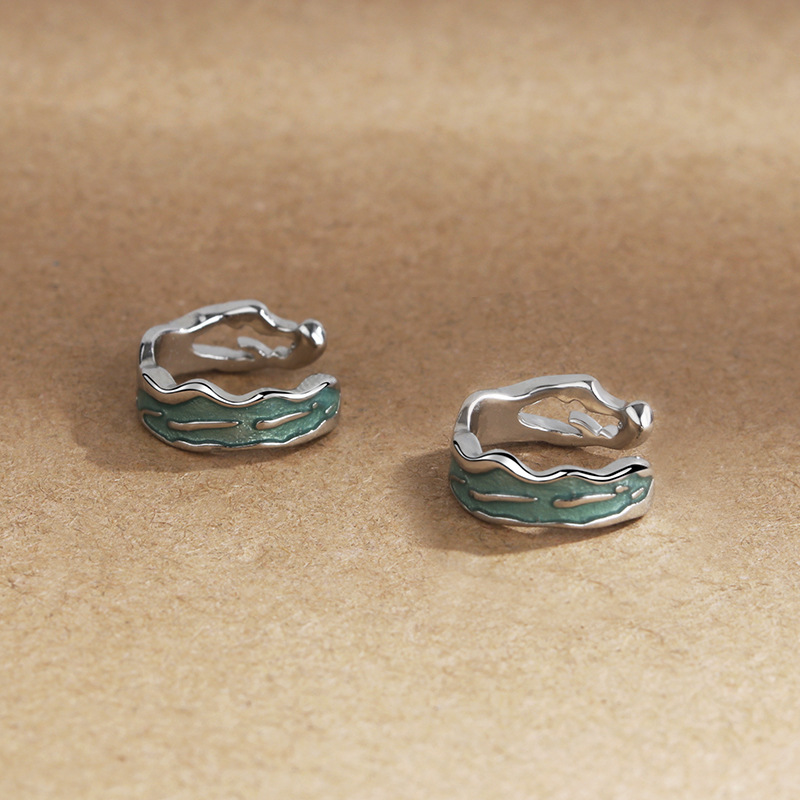 Mint Green Ear Clip Men's and Women's Temperament Simple Corrosion Hollow Texture Earrings Niche Design Trendy Men's Personality Earrings