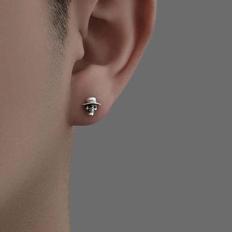 Old Skull Gentleman Screw Ear Bone Nail Halloween Popular Cool Trendy Male Sexys Wearing Hat Ghost Head Small Earrings