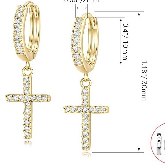 Europe and the United States cross-border Amazon trend hot men's stainless steel zircon cross pendant earrings ear clip suit