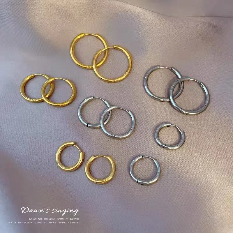 European and American INS style 4mm thick simple 18k gold plated stainless steel circle earrings simple gold plated men's and women's ear buckle