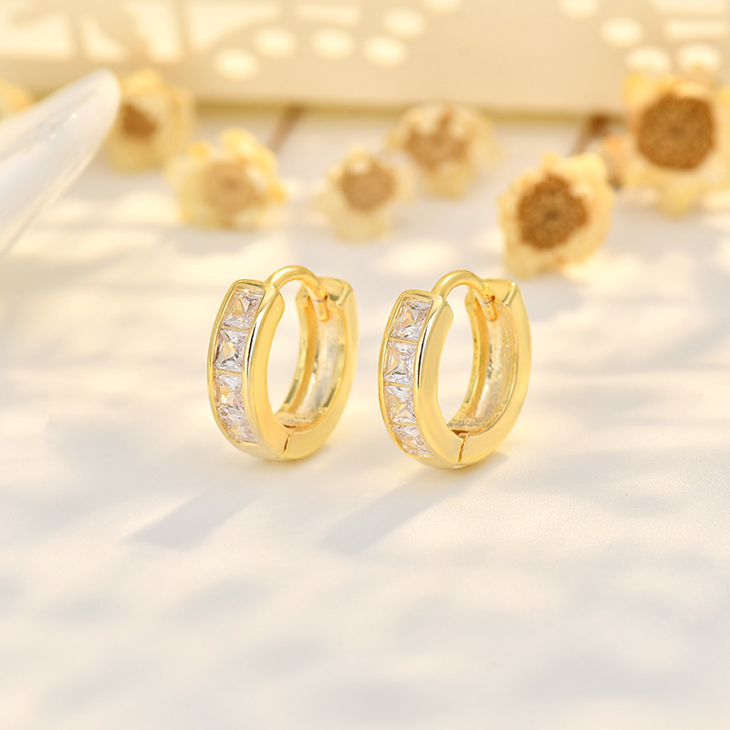 Qiaolanxuan Square Diamond Zircon Earrings Women's Fashion Sparkling Diamond Circle Earrings Trendy Cold Style Men's Single Earrings