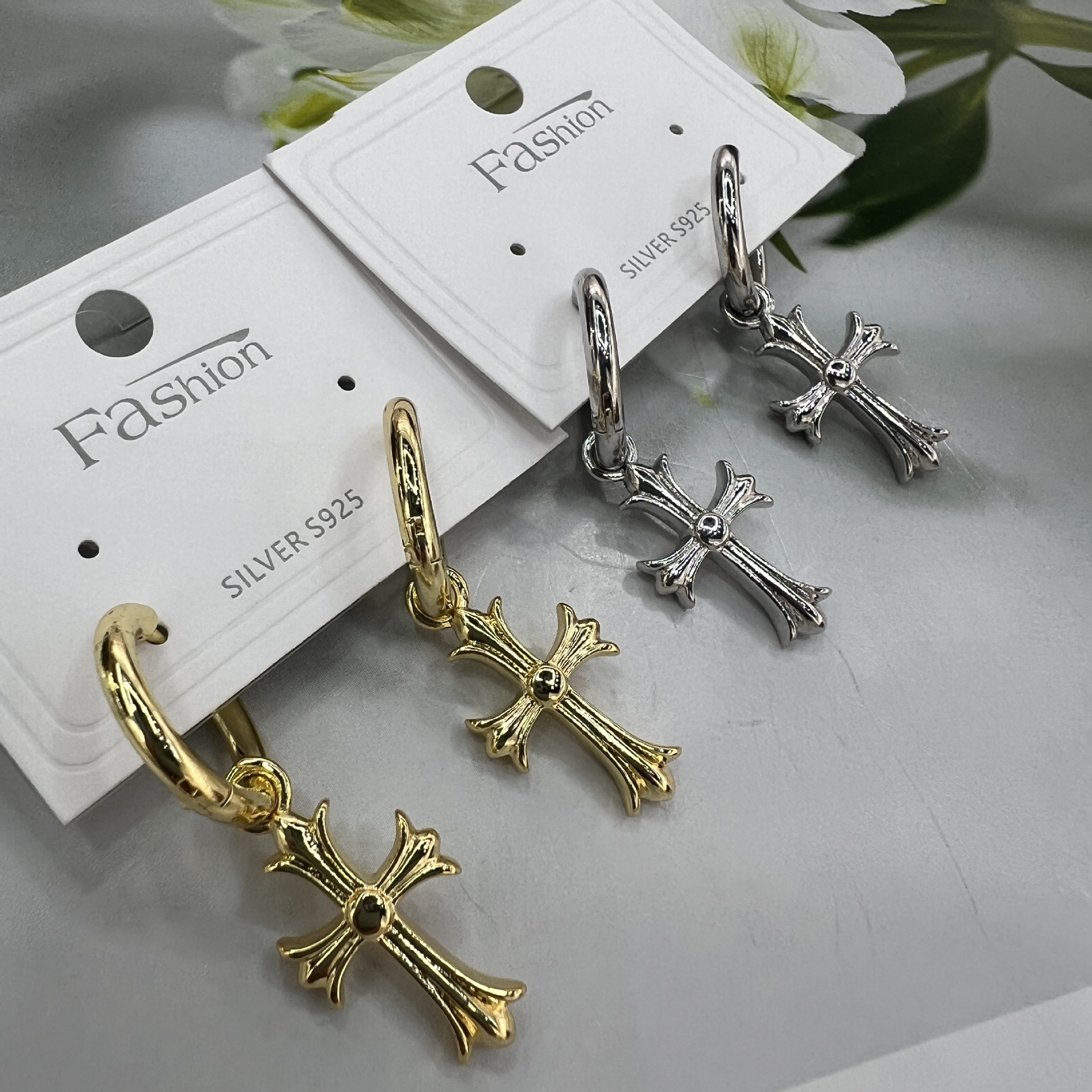 Europe and the United States cross-border new fashion personality cross earrings male students street hip hop earrings ruffian handsome do not fade earrings