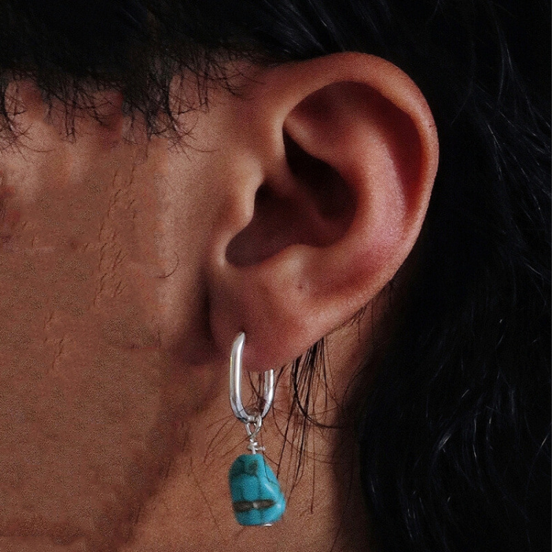 Original Unisex Xizang Handmade Earrings Fashion Blue Fashion Irregular Earrings for Men and Women All-match Ethnic Xizang Style