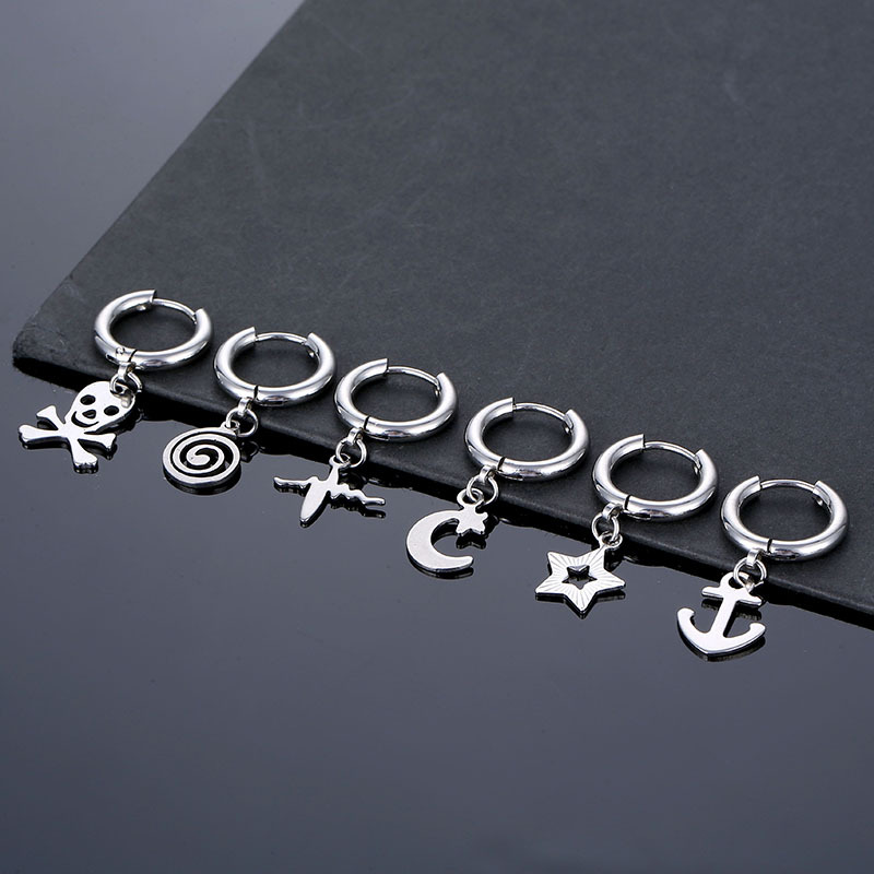 Cross-border stainless steel punk round wire earrings Korean version of simple titanium steel pendant earrings men's cold wind earrings manufacturers for sale