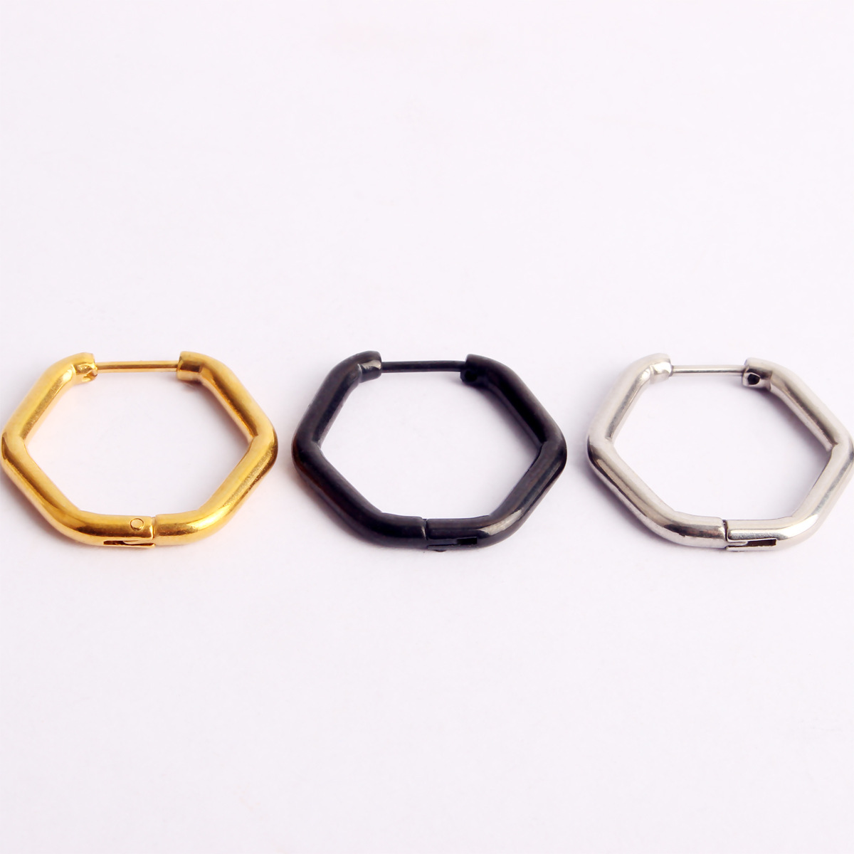 Korean style fashion hexagonal stainless steel ear ring ear buckle simple all-match women's earrings wholesale cross-border men's jewelry exclusive