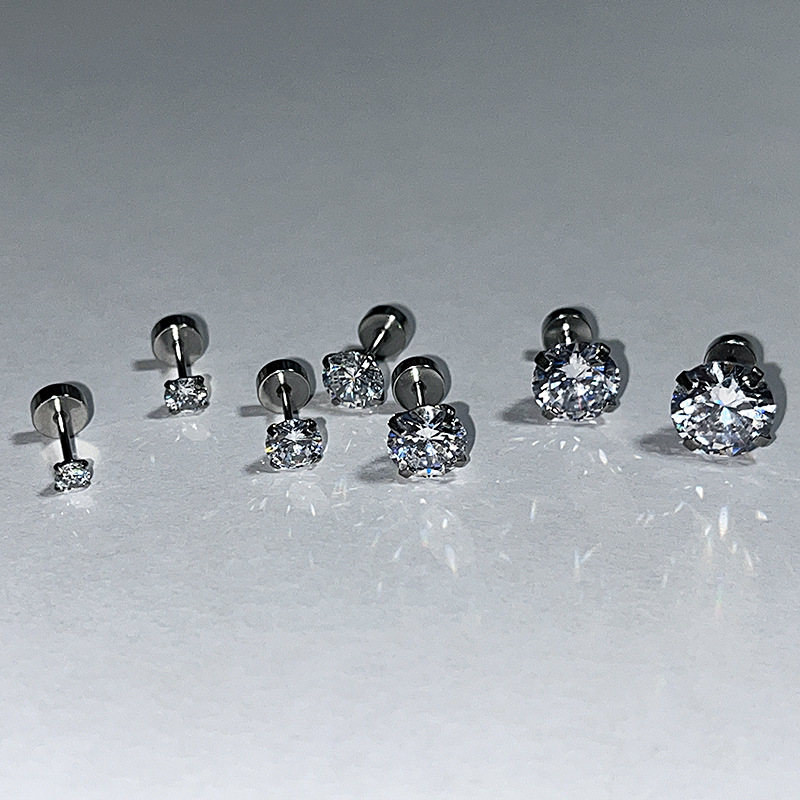Flash white round diamond flat ear bone nail niche simple titanium steel screw ear worm nail cold style men's and women's ear studs