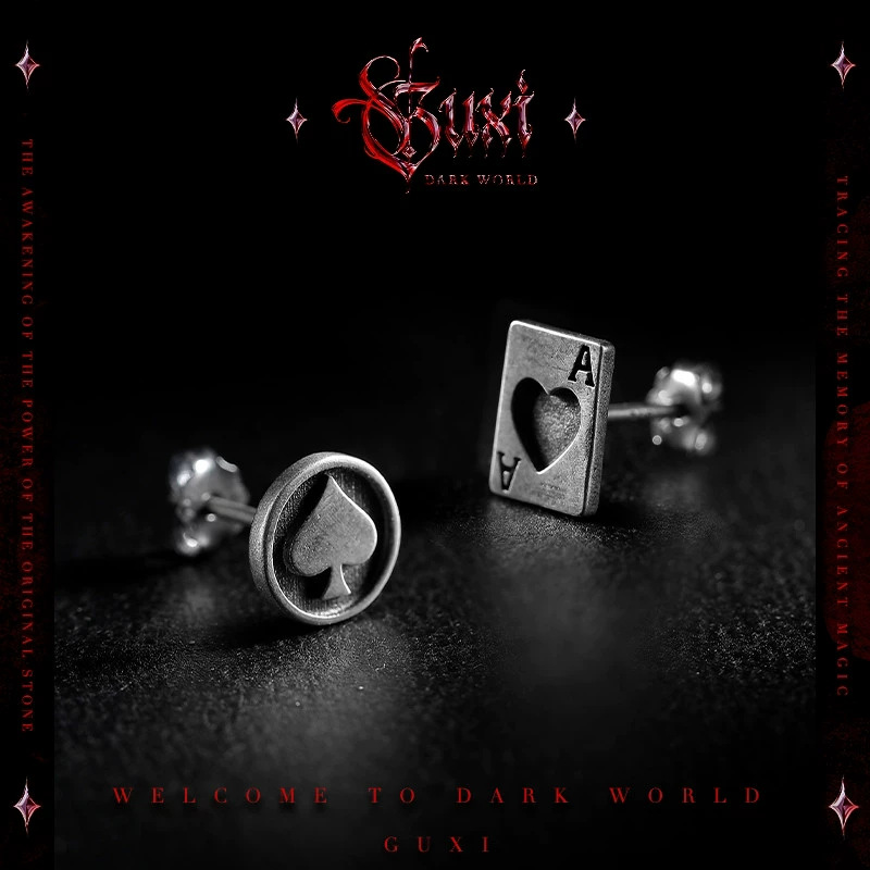 Personalized Playing Card Earrings for Boys, High-End, Handsome, Simple, Spade a Earrings, Niche Retro Design Earrings