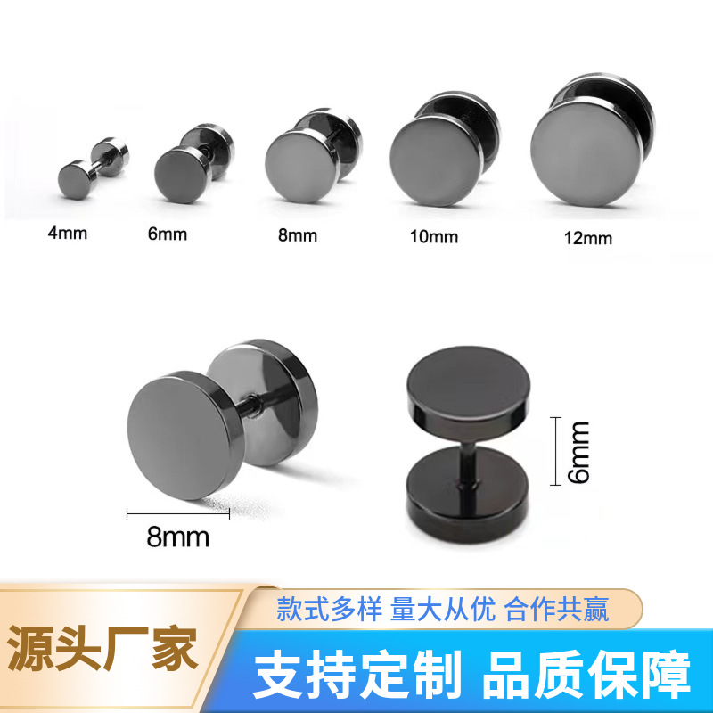 Black Barbell Men's Earrings Stainless Steel Personalized Earrings Titanium Steel Korean Style Light Luxury Non-Fading Earrings Compact