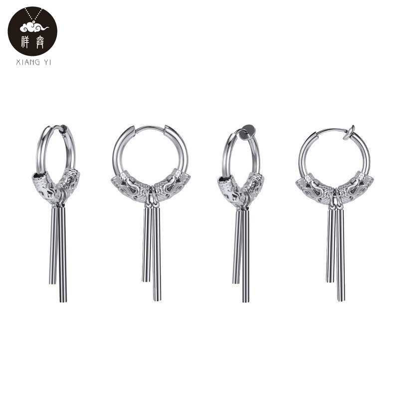 Cross-Border New Earrings Dragon Pattern Ear Accessories Men's Ear Clips Totem Stud Earrings Round Bar Ear Cuffs Men's Dragon Pattern Elements