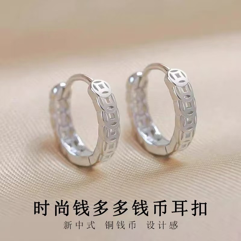 Qian Duoduo Coin Earrings Women's Earrings All-match Light Luxury Niche Design Sense Earrings Men's Copper Earrings