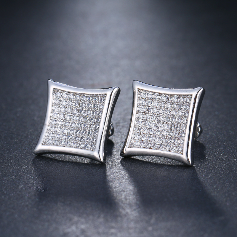 European and American hip-hop personality Fashion Square full diamond earrings men's niche minimalistic men's earrings jewelry wholesale