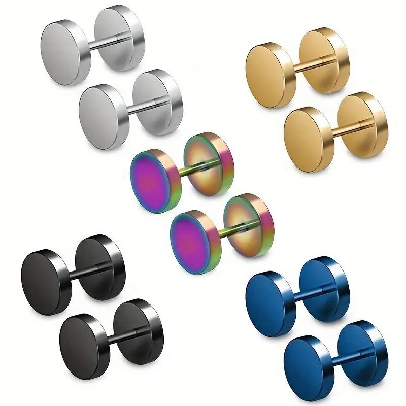 Stainless Steel Two-head Round Pancake Earrings Puncture Dumbbell Thread Head Earrings Barbell Earrings I-shaped Men's Universal Earrings