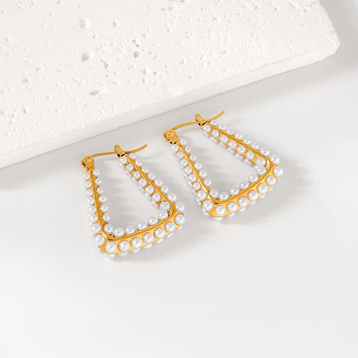 Cross-Border High-End Korean Trapezoidal Earrings for Women Stainless Steel Earrings Earrings Pearl Electroplated Jewelry for Men Manufacturer Wholesale