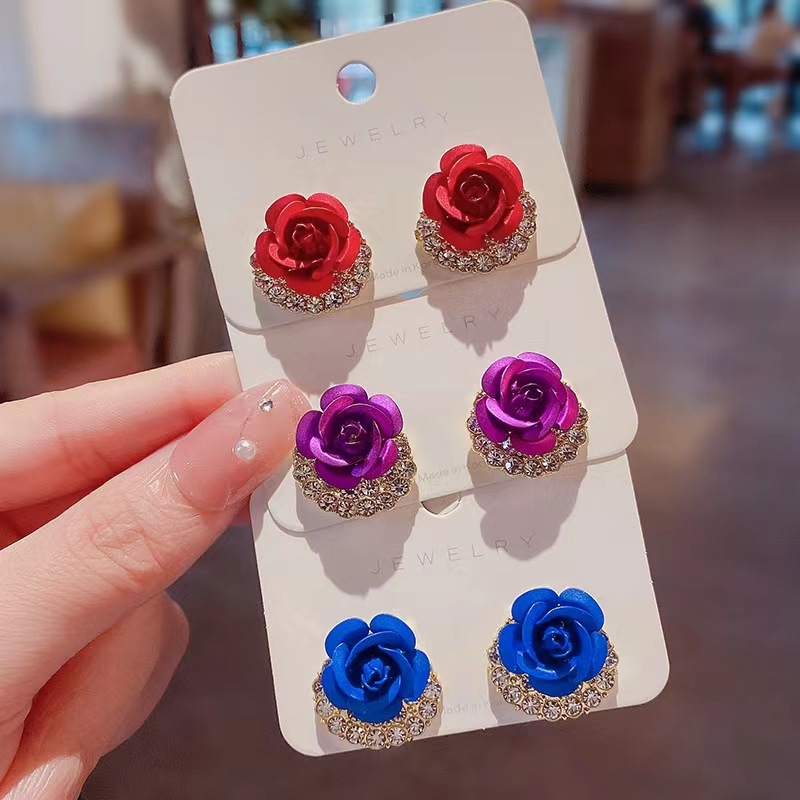 Star 925 Silver Earrings High-grade Design Sense Niche Super Flash Diamond Rose Earrings Female Elegant Fashion Earrings