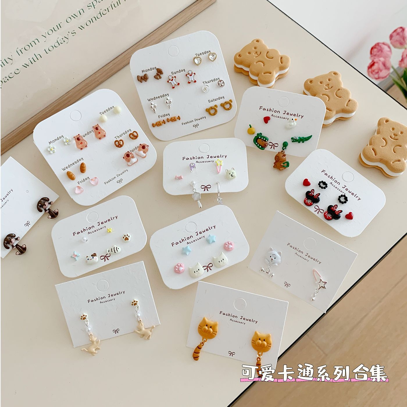 Fun small fresh cartoon animal earrings suit collection female silver needle color cat cute student earrings wholesale
