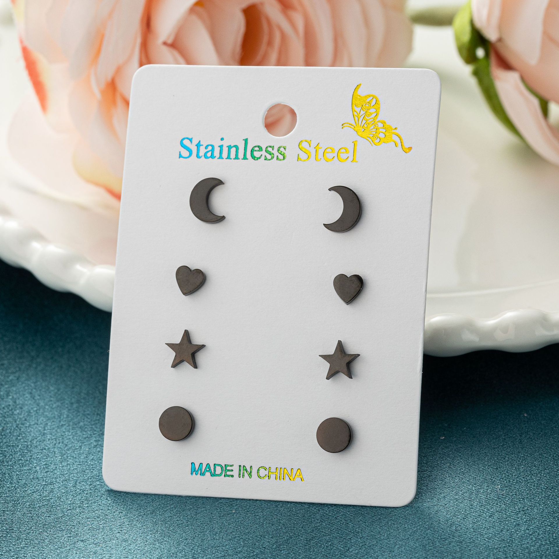 Black Series Stainless Steel Geometric Mini Small Earrings Ins Men's and Women's All-match Love Heart Round Combination suit