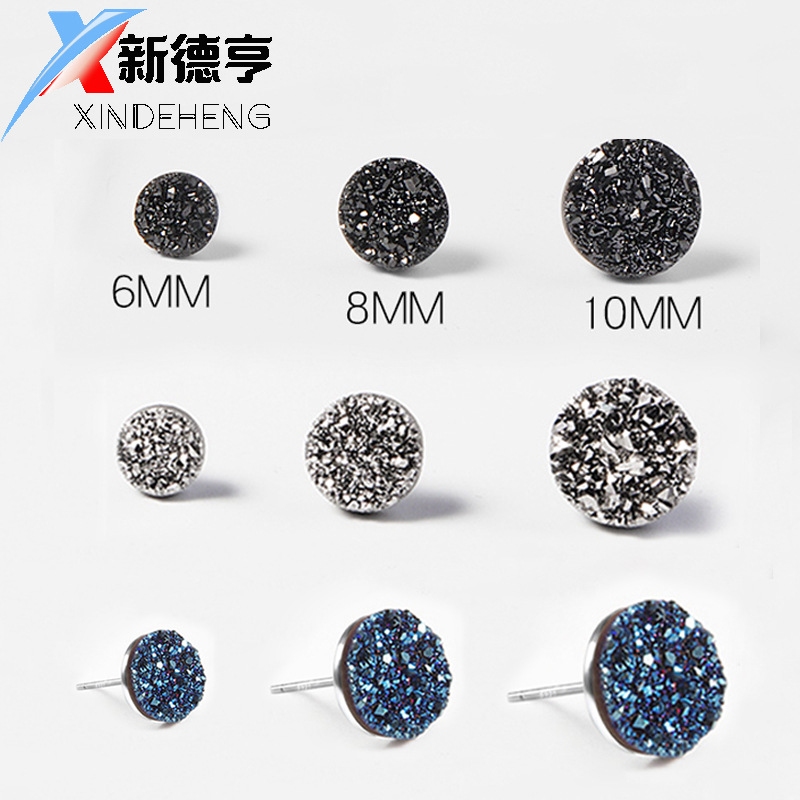 K-Style of Trendy Men's Fashionable and Personalized Agate Crystal Cluster Earrings Crystal Cluster S925 Silver Earrings for Students