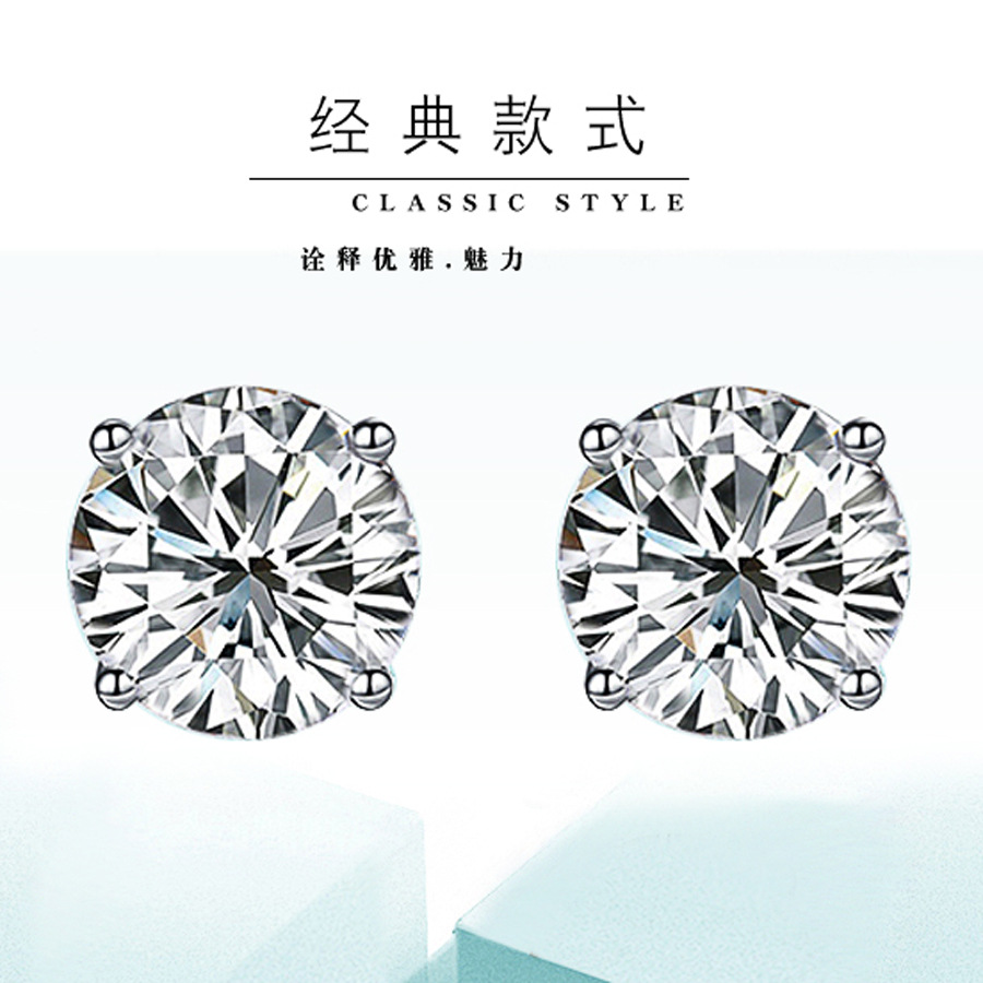 ED064 silver ear pin four-claw single diamond 50 points imitation diamond men's and women's simple ear studs 80 zircon earrings 1 karat