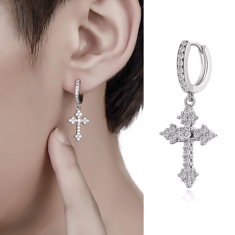 Diamond Stud Earrings Cross Earrings 2025 New Popular Earrings High-End European and American Hip-Hop Men's Earrings