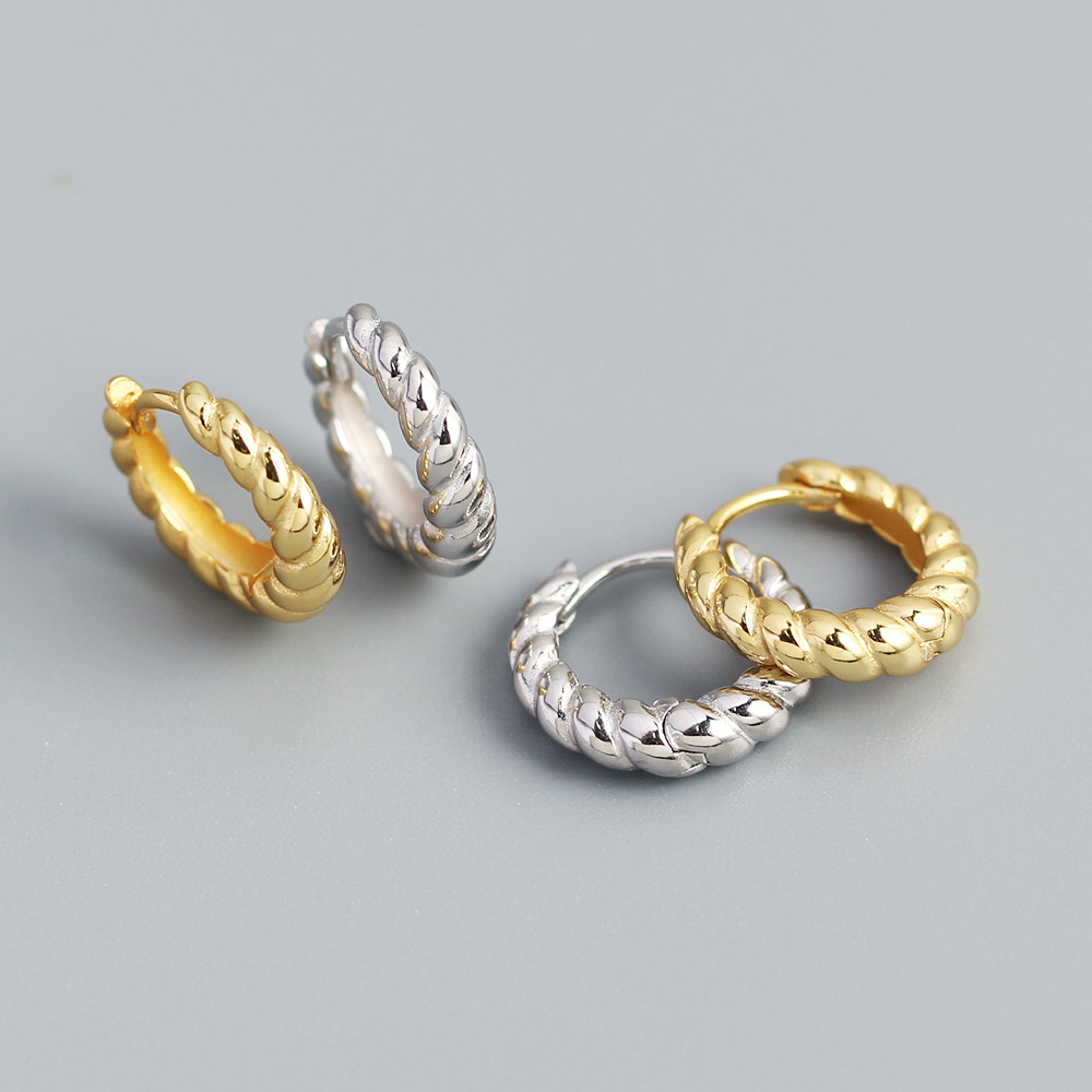 YHE0411 European and American French Entry Luxury S925 Silver Ins Metal Style Textuzed Twist Earrings All-match Stud Earrings