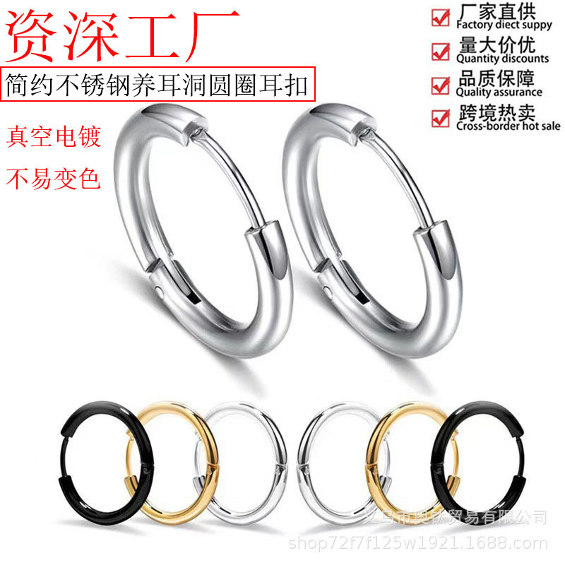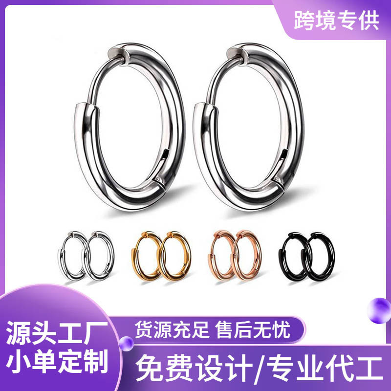 Stainless steel ear buckle factory direct earrings earrings titanium steel earrings thick thin coil male and female students with the same circle