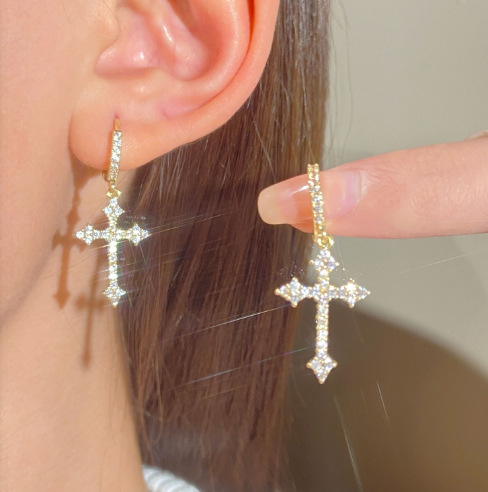 Cross Earrings Ins Earrings Women's Earrings with Diamonds 2025 New Fashionable High Sense European and American Hip-Hop Men