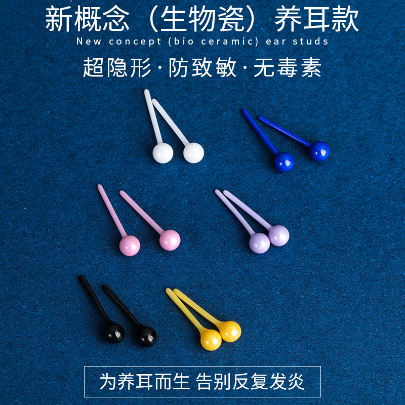 Biological porcelain round ball ear nail for raising ear hole female ceramic ear stick for raising inflammation sleep free male ear bone nail ear pin earrings