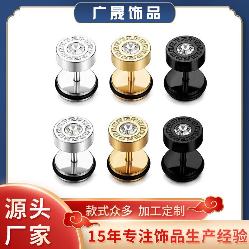 men's and women's best selling retro disc Great Wall grain diamond round titanium steel earrings ear jewelry wholesale