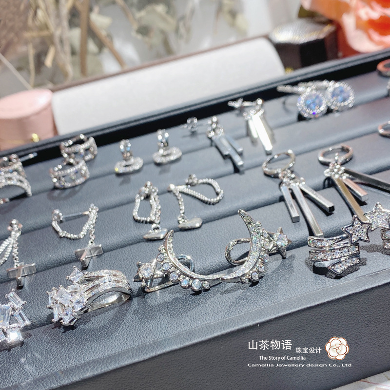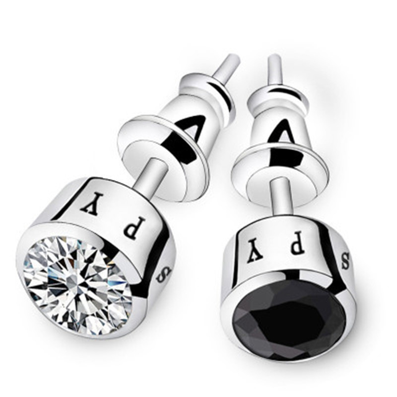 Copper Silver Plated Earrings Men's Single Japanese and Korean Style Distinctive Diamond-encrusted Simple Trendy Men's Fashion Earrings Ear Jewelry