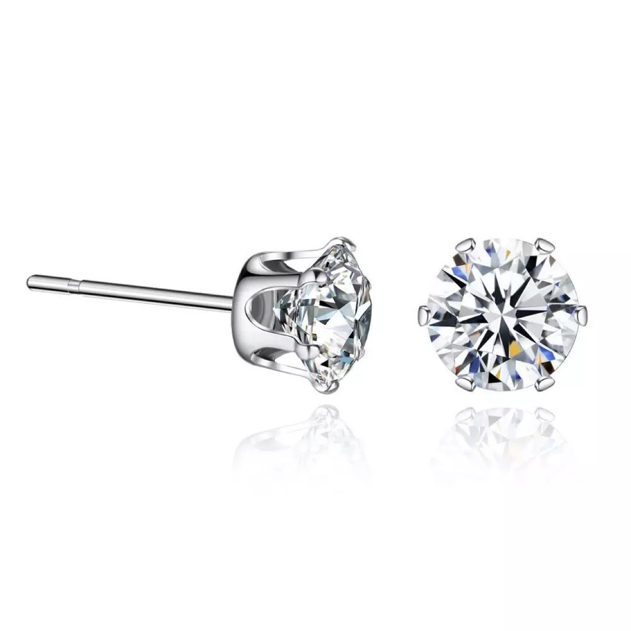 European and American Stainless Steel Piercing Jewelry Zircon Earrings for Women Crown Six-Claw Small Earrings for Men Simple Non-Fading Ear Bone Nails