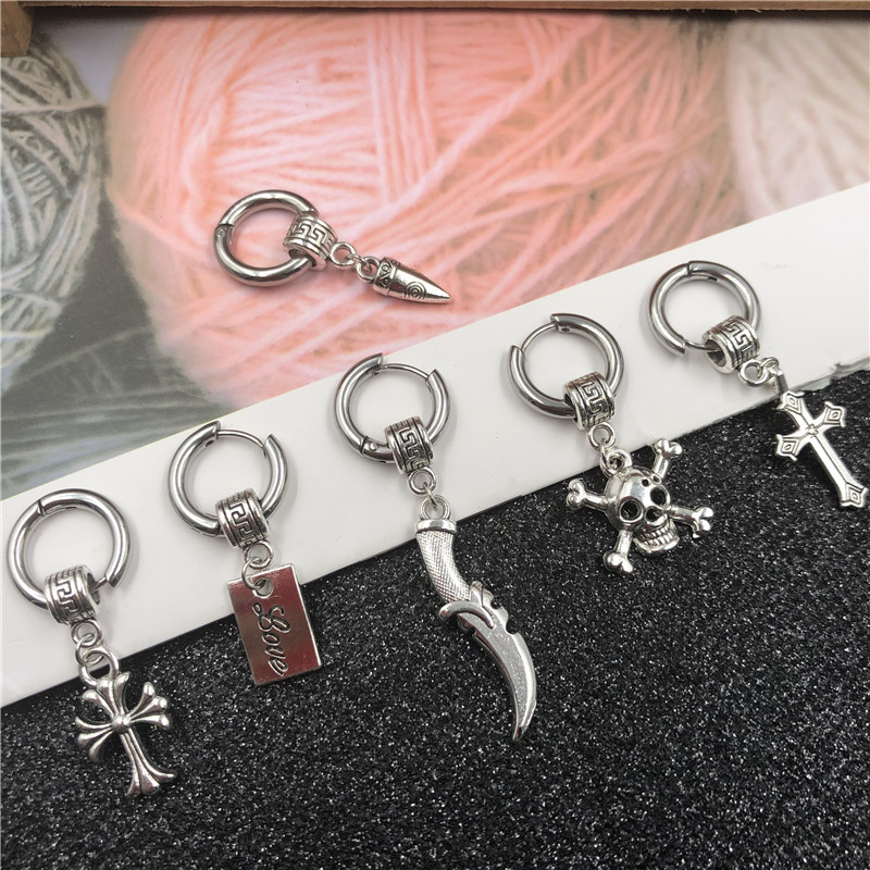 Korean style cross stud earrings men's fashion single personalized circle pendant earrings student jewelry 2 yuan store supply