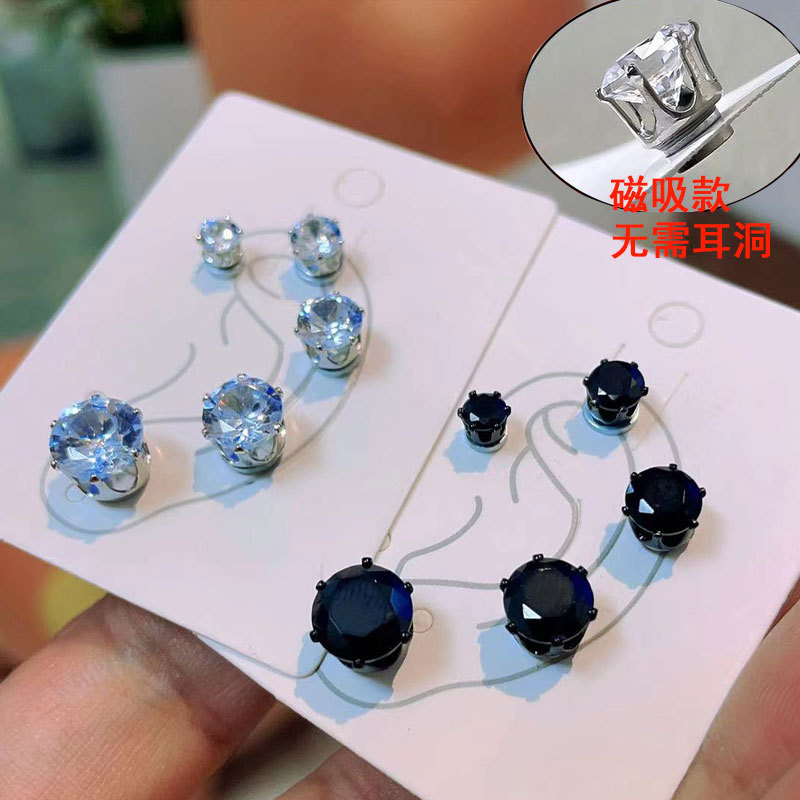 Flash ear worm nail iron-absorbing stone ear worm nail male non-pierced magnetic ear bone clip black zircon magnetic ear bone nail ear studs