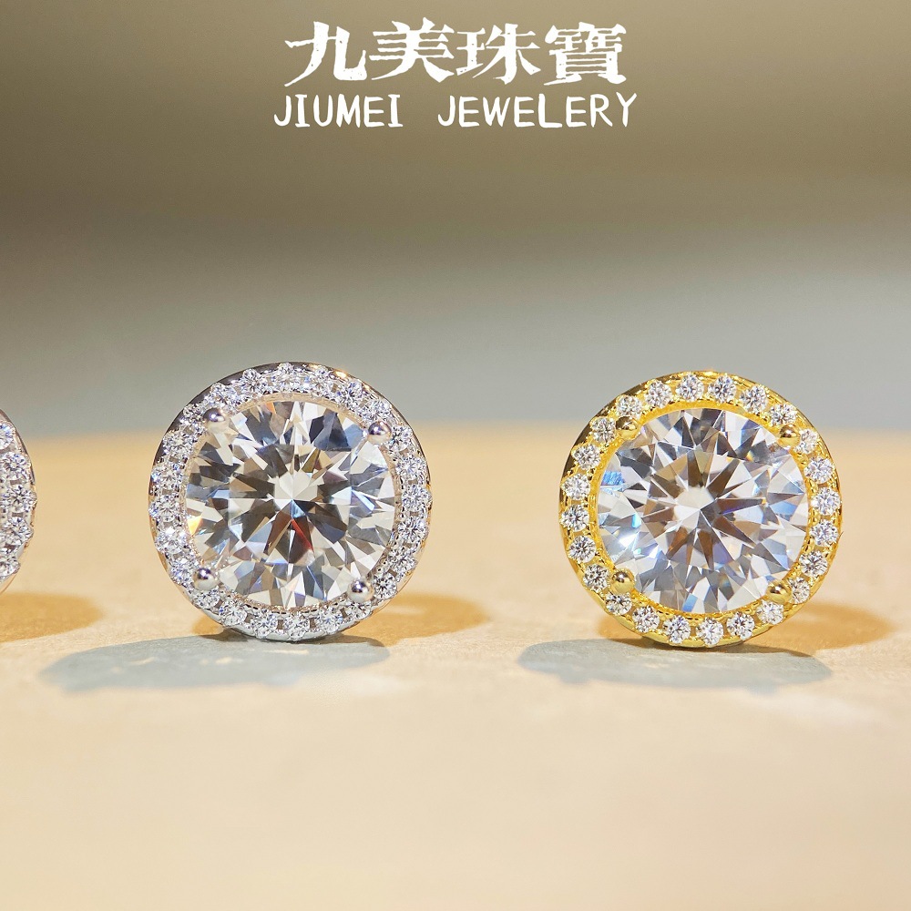 S925 Sterling Silver 1 karat Mosan Earrings Round Bag European and American Light Luxury Men's and Women's AU750 Platinum Plated Moissanite Earrings