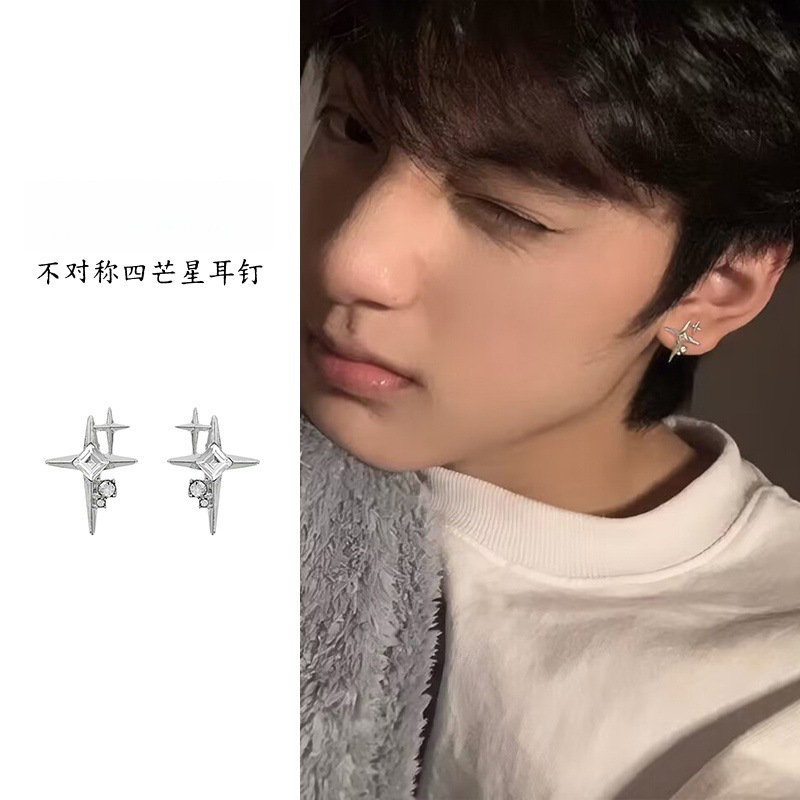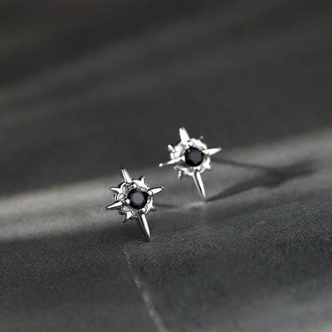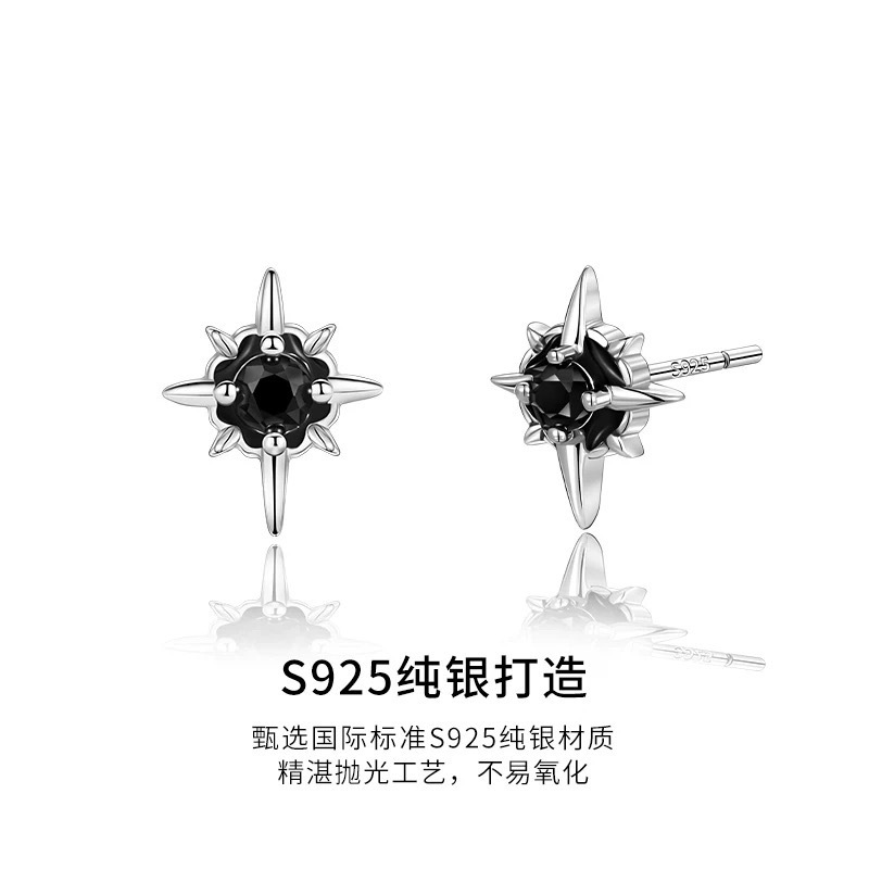 S925 Sterling Silver Polaris Earrings for Men, Personalized, High-End, Trendy, Cool, Niche, Black, Handsome Earrings, Versatile Ear Bone Nails
