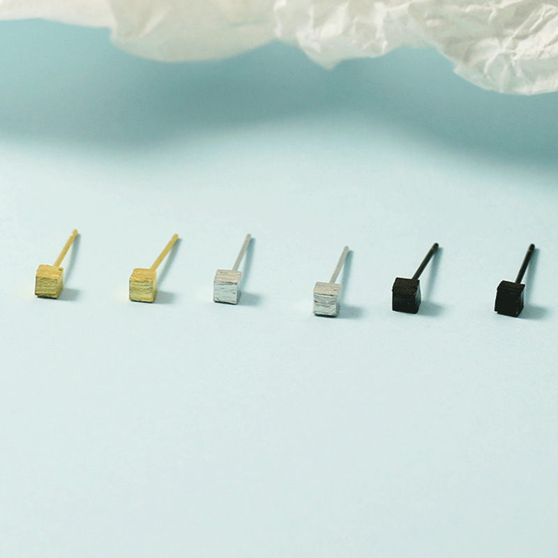 Wire-drawing Square Earrings Simple Small Mini Cold Style Ear Holes for Men and Women Distinctive Sleep-free Earrings