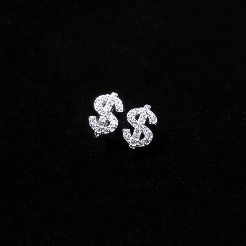 New US Dollar Earrings for Men and Boys Advanced Sense Zirconium-inlaid Super Flash Hip-hop European and American Niche Earrings All-match Cross-border Earrings