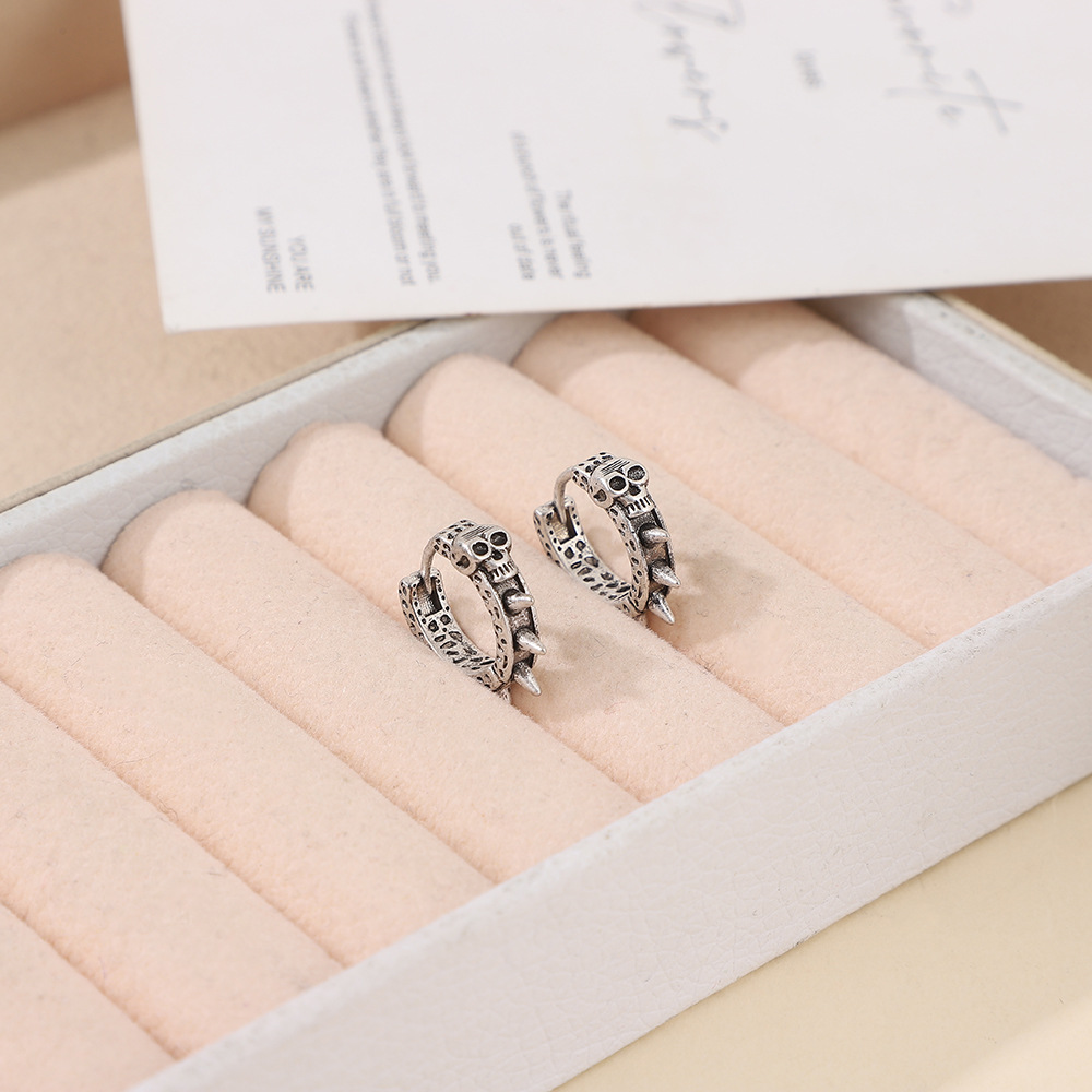 Cross-Border Copper Earrings European and American Hip-Hop Punk Style Rivet Skull Ear Cuffs Gothic Personality Earrings Geometric Fashion