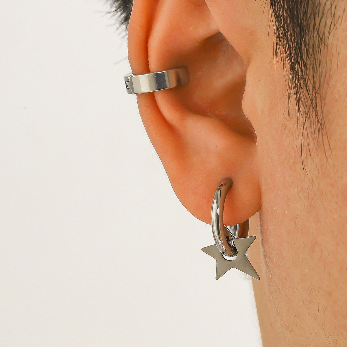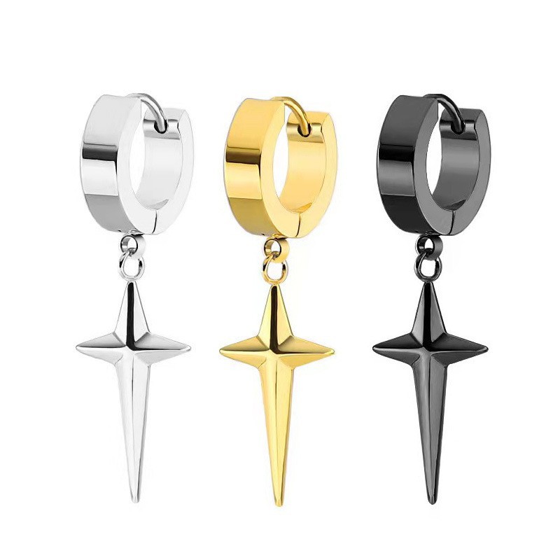 Korean style fashion titanium steel earrings men's ear buckle with ear hole earrings cross pendant five-pointed star earrings