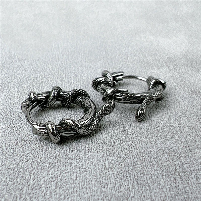 European and American Retro Snake Earrings, Stylish Men's Hip-Hop Punk Domineering Fashion Earrings, Trendy Snake Earrings