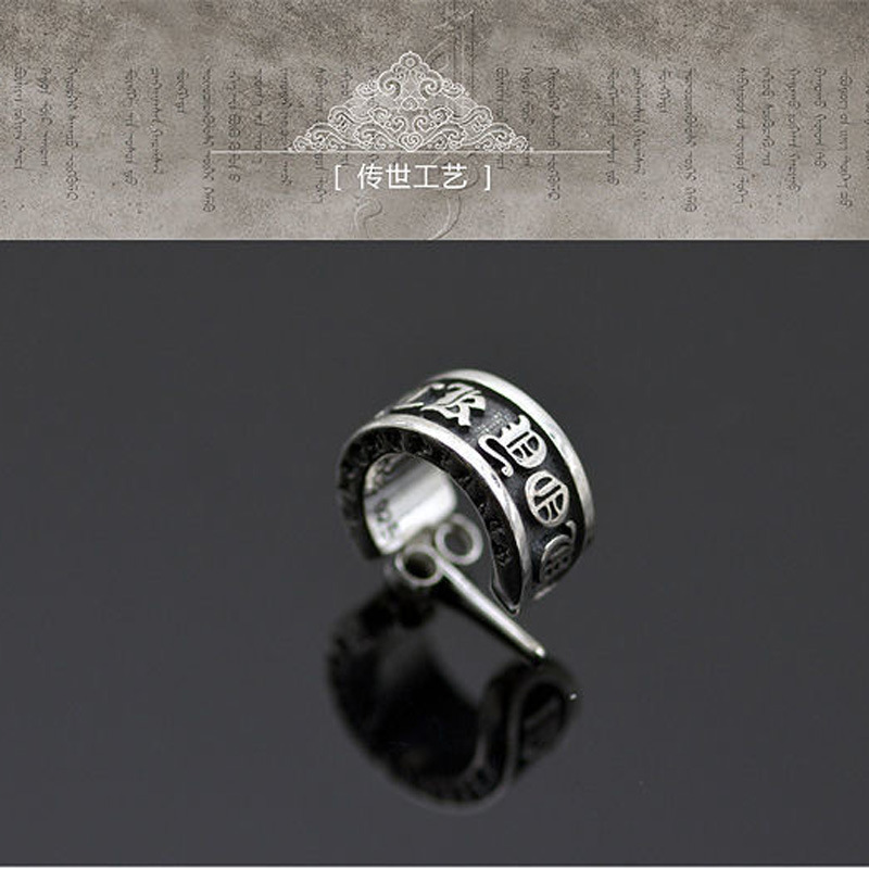 Mengke Six Words Proverbs Men's and Women's Imitation Silver Ear Stud Elegant Retro Personality Simple Earrings Earrings Single Jewelry Batch