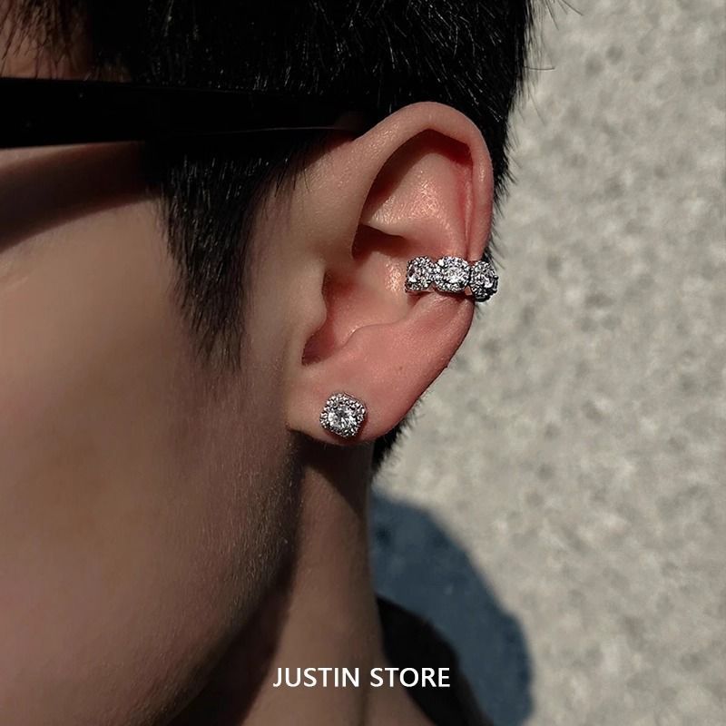 Rock Candy Full Diamond Ear Bone Clip Single Non-Pierced Earrings Super Flash Zircon Earrings for Men European and American Niche Stylish Ear Clips for Men