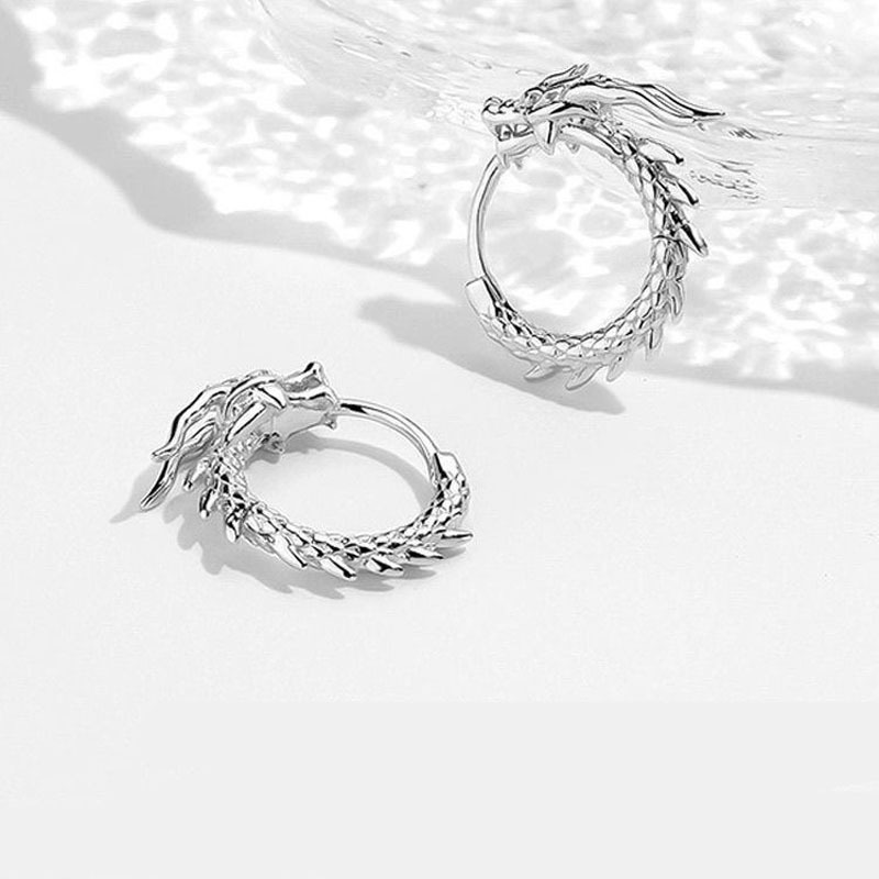 Dragon-Shaped Stud Earrings for Men Trendy Imitation Silver Light Luxury Niche Design Stylish Earrings Gift for Boyfriend Trendy Dragon-Shaped Jewelry Wholesale