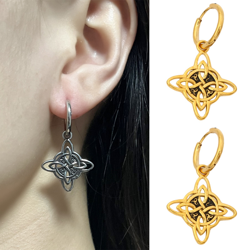 Cross-Border New Celtic Knot Earrings Pendant Retro Simple Hollow Four-Leaf Clover Men's Earrings Jewelry