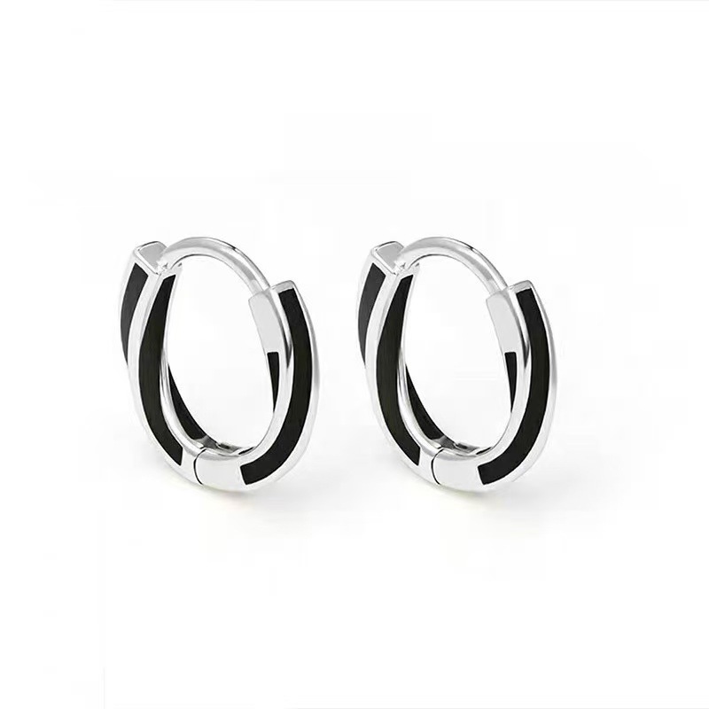 S925 Sterling Silver Earrings High-grade Niche Design Sense Black and White Striped Ear Buckle Trendy Light Luxury Sense Boys Rings