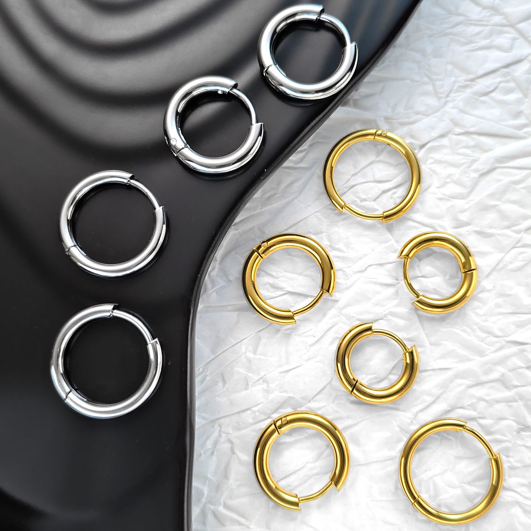 Titanium Steel Cross-Border European and American Round Wire Earrings Fashion Simple DIY Stainless Steel Ear Cuffs Trendy Unisex Hoop Earrings Accessories