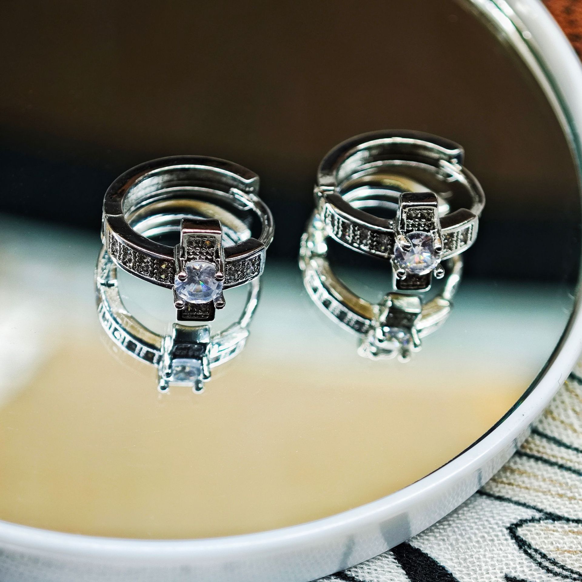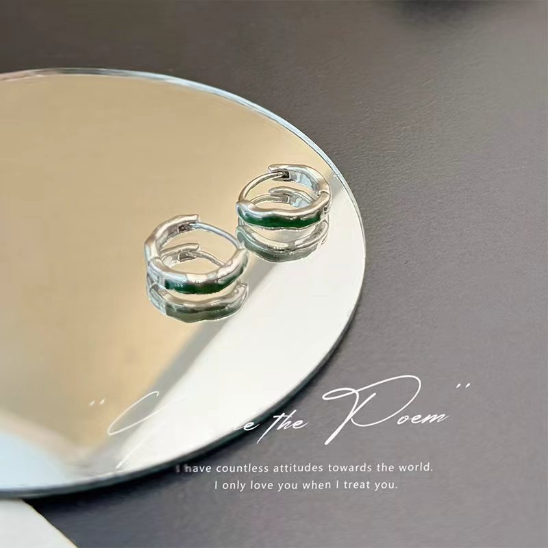 Same style earrings double ring plain ring new popular niche design high-grade earrings men's elegant all-match fashion earrings